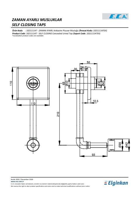 Özellikler Tek su girişlidir Su akış zamanı 0-40 sn. arası ayarlanabilir