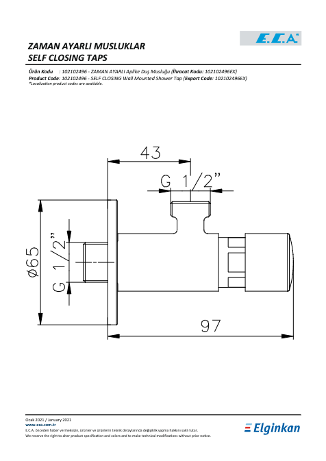 Özellikler Tek su girişlidir Su akış zamanı 0-40 sn. arası ayarlanabilir Duş çıkışı G 1/2” dir