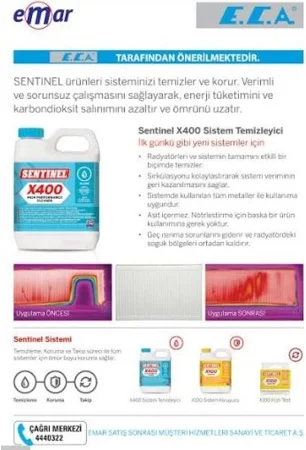 Sentinel X400 High Performance Cleaner eski sistemlerin temizliği için özellikle dizayn edilmiştir. Bu ürün radyatörler ve boru tesisatlarındaki devridaimi yeniler. Sentinel X400 System Restorer’in son derece etkli formül manyetit birikinti oluşumunu ortadan kaldırarak radyatorlerdeki soğuk bölgelerin oluşmasını engeller ve saglıklı ısı dağılımını yeniden ortaya çıkartır. |
