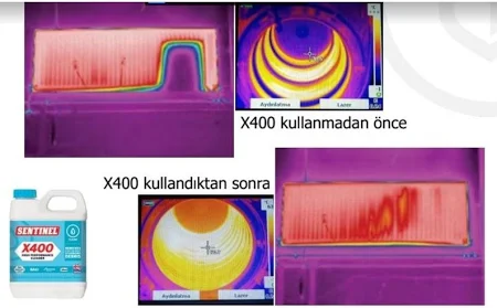 X400 radyatör temizleyici kimyasalı radyatörlerdeki tortu ve çamurlaşmış yapıya nüfuz ederek radyatör iç yüzeyinden söker, X400 uygulamasının ardından radyatörlerin basınçlı su ile temizlenmesiyle radyatörler ilk günkü ısıtma kapasitesine kavuşur. |